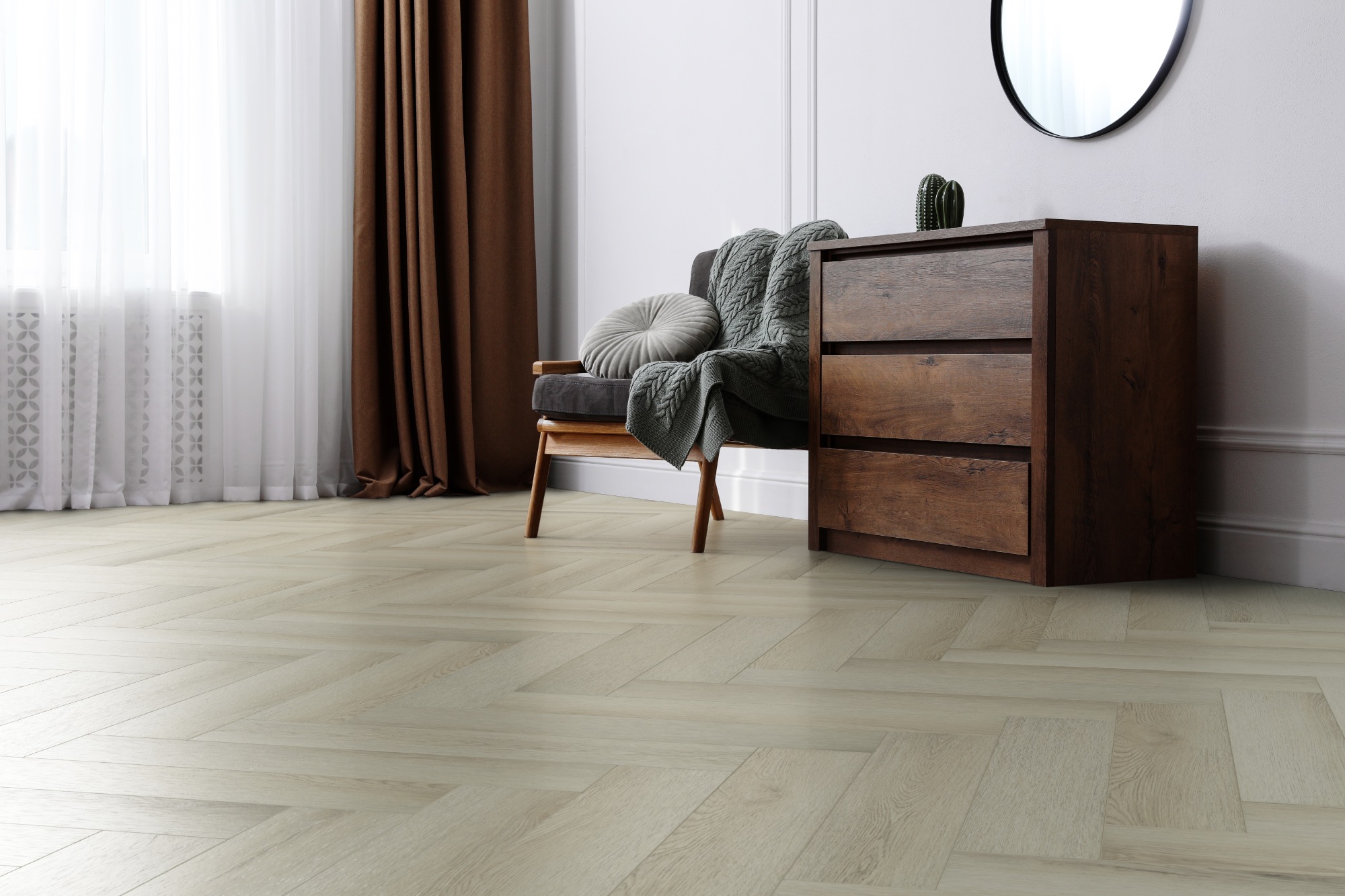 Линейка Soundless - главная новинка на рынке кварц-виниловых напольных покрытий! Новое, самое тихое в своем классе напольное покрытие, которое тише всех аналогов в 6 раз! Уникальная, запатентованная технология звукопоглащающего слоя Soundless в сочетании с верхним слоем из LVT, несущего слоя MVF и пробковой подложкой, делает этот пол невероятно приятным, теплым, тихим и полезным для здоровья. Дополняет все это техническое великолепие 4-х сторонняя, крашенная в цвет декора, фаска и формат старой доброй английской елочки! -