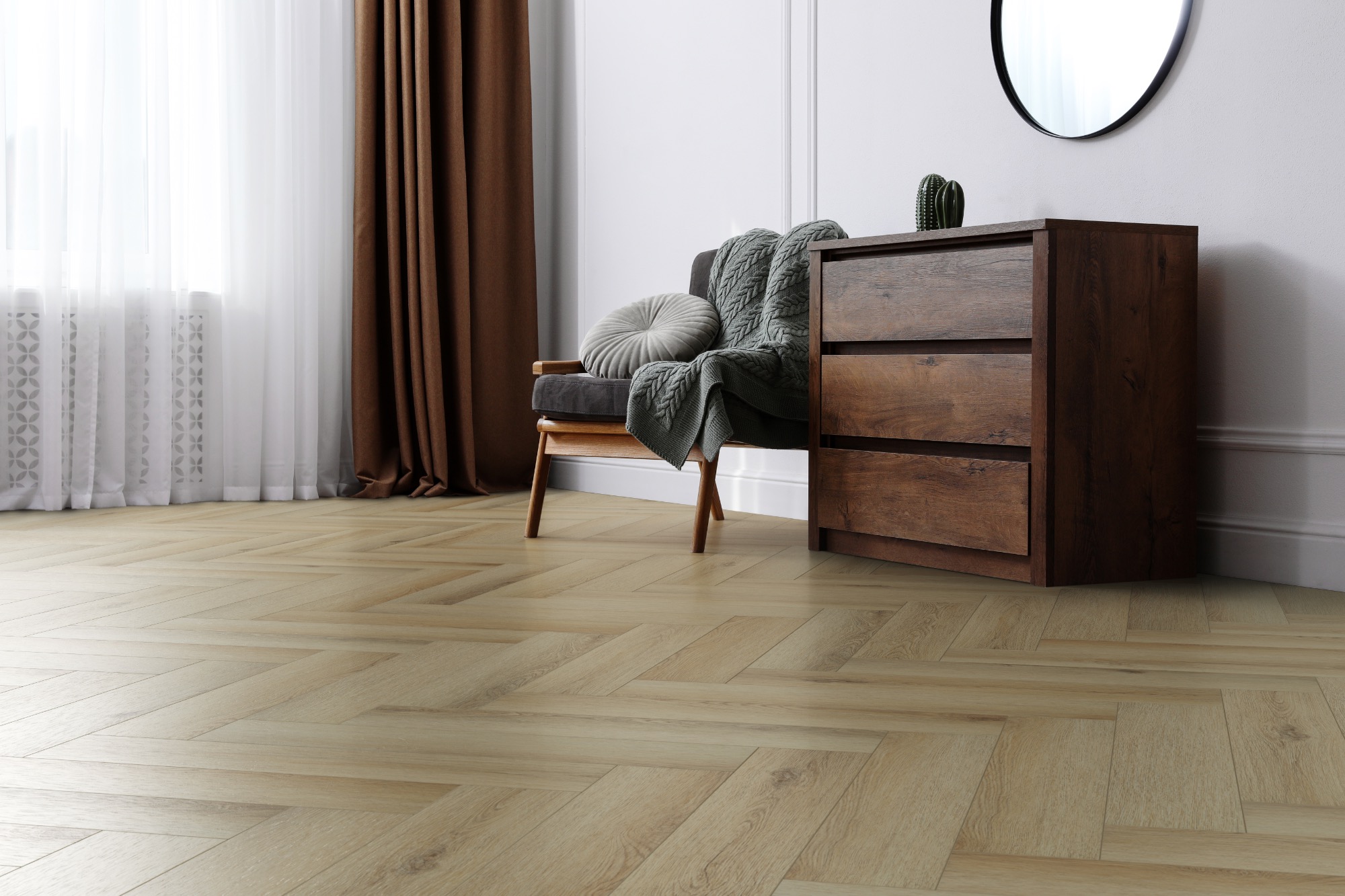 Линейка Soundless - главная новинка на рынке кварц-виниловых напольных покрытий! Новое, самое тихое в своем классе напольное покрытие, которое тише всех аналогов в 6 раз! Уникальная, запатентованная технология звукопоглащающего слоя Soundless в сочетании с верхним слоем из LVT, несущего слоя MVF и пробковой подложкой, делает этот пол невероятно приятным, теплым, тихим и полезным для здоровья. Дополняет все это техническое великолепие 4-х сторонняя, крашенная в цвет декора, фаска и формат старой доброй английской елочки! -