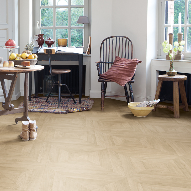 Гладкая поверхность на ощупь, 33 класс применения, толщина 12 мм делают этот ламинат от Quick-Step прекрасным выбором для укладки как в коммерческих, так и жилых помещениях.
