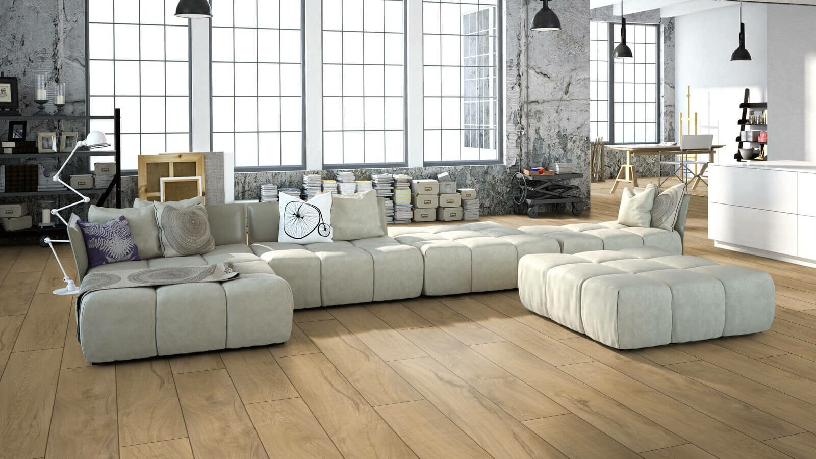 Широкие и длинные панели визуально расширяют пространство, а глубокая текстура с тиснением в регистр точно повторяет структуру древесных волокон. Надёжная замковая система гарантирует быструю и удобную укладку без клея, а совместимость с системами «тёплый пол» делает ламинат универсальным решением для любого помещения.