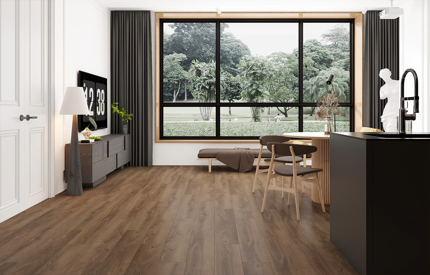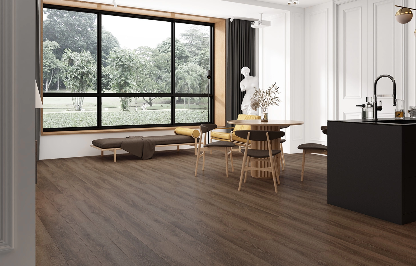 Класс истираемости 33/43 и инновационная система защиты поверхности Double Scratch Protect обеспечивают стойкость к царапинам, ударам и механическим воздействиям — пол сохраняет первозданный вид на годы.